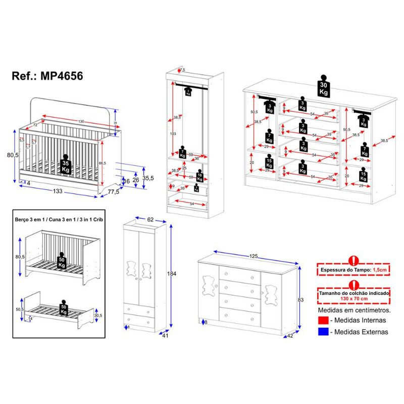 Casa e DecoraçãoMóveisQuarto completoQuarto de Bebê Completo com Berço Americano 3 em 1 Teddy Multimóveis MP4656