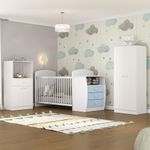 Quarto Infantil com Berço-Cômoda Laura Multimóveis Branco/Azul REF: 7909103624522