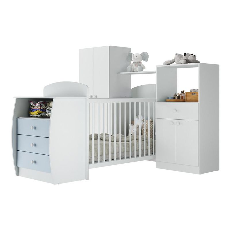 Casa e DecoraçãoMóveisQuarto completoQuarto Infantil com Berço-Cômoda Laura Multimóveis Branco/Azul