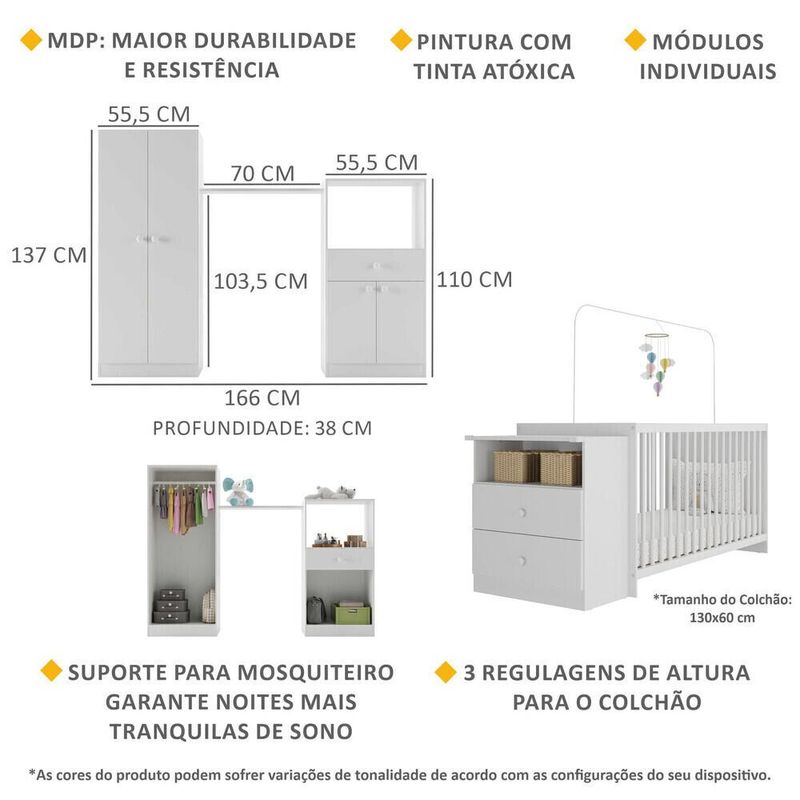 Quarto Infantil com Berço Cômoda Olívia Multimóveis Branco REF: 571662_Sicredi