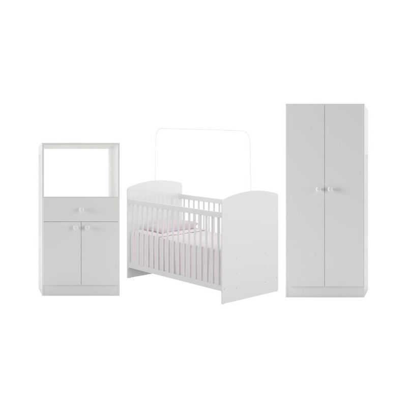 Casa e DecoraçãoMóveisQuarto completoQuarto Infantil Completo Berço com Colchão Incluso Guarda-Roupa e Cômoda Multimóveis MP4359