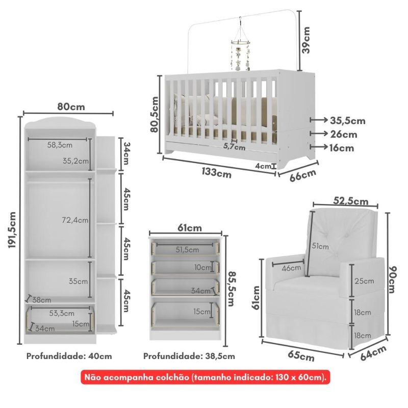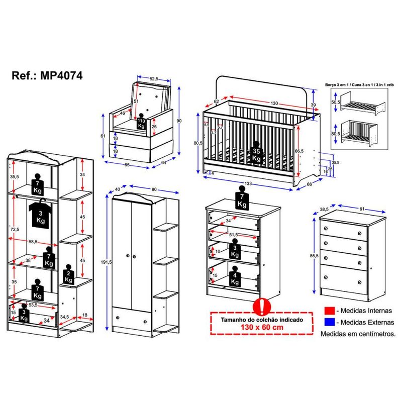 Casa e DecoraçãoMóveisQuarto completoQuarto Infantil Completo com Poltrona de Amamentação Multimóveis MP4074