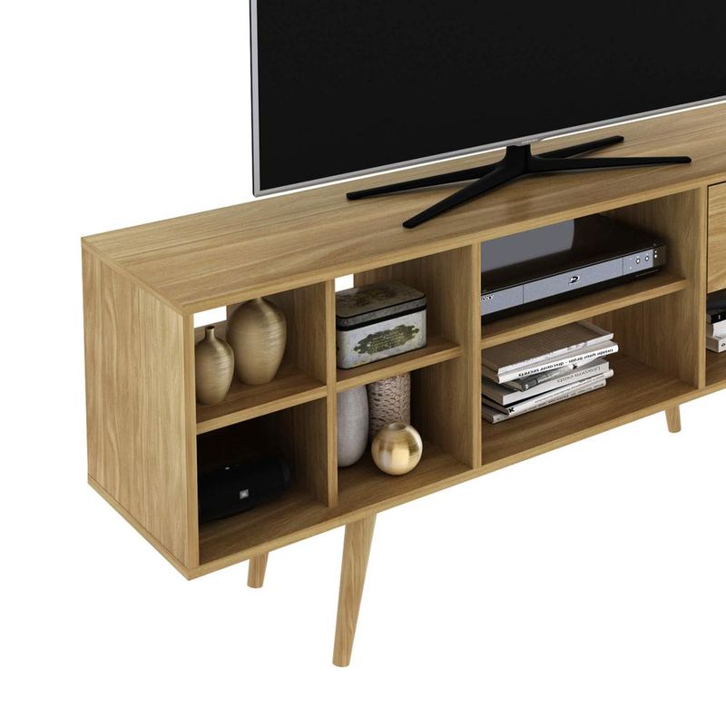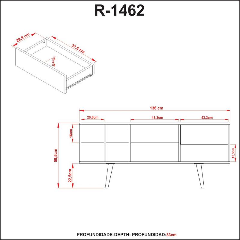 Casa e DecoraçãoMóveisRack e painel de TVRack Aparador Sala Tv Até 42'' Com Gaveta e 7 Nichos Amêndoa R1462 Tecnomobili