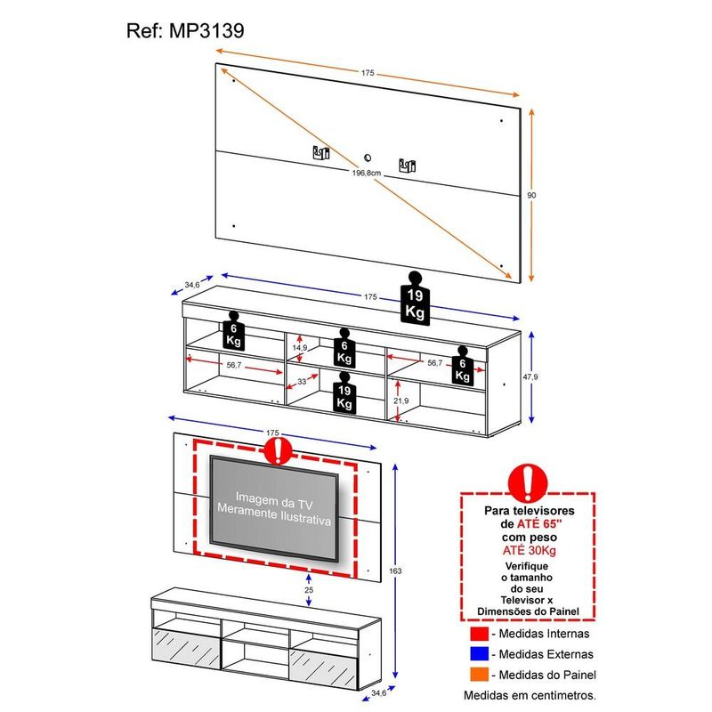 Rack c/ Painel e Suporte TV 65" e Espelho Flórida Multimóveis Preto REF: 765016_Sicredi