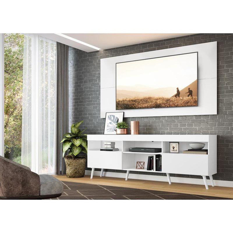 Casa e DecoraçãoMóveisRack e painel de TVRack c/ Painel e Suporte TV 65" e Pés Retrô Flórida Multimóveis Branco