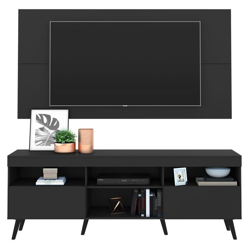 Casa e DecoraçãoMóveisRack e painel de TVRack c/ Painel e Suporte TV 65" e Pés Retrô Flórida Multimóveis Preto