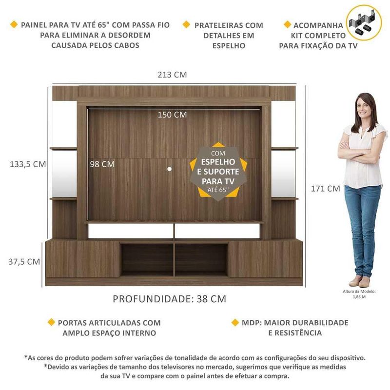 Rack c/ Painel e Suporte TV 65" Prateleiras c/ Espelho Oslo Multimóveis Madeirado REF: 766916_Sicredi