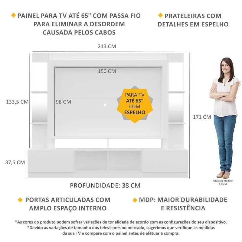 Casa e DecoraçãoMóveisRack e painel de TVRack c/ Painel TV 65" Prateleiras c/ Espelho Oslo Multimóveis Branco