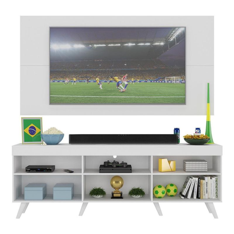 Casa e DecoraçãoMóveisRack e painel de TVRack c/ Painel TV 65" Retrô com Espelho Holanda Multimóveis BR3138 Branco