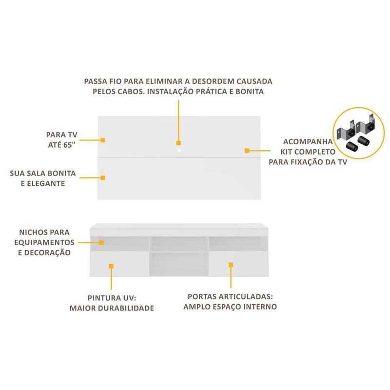 Rack com Painel e Suporte P/TV até 65" Flórida Multimóveis Branco REF: 766121_Sicredi