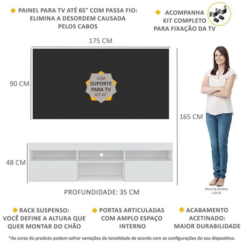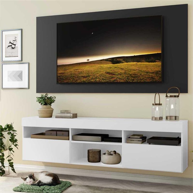 Rack com Painel e Suporte para TV até 65" Suspenso com 2 Portas Londres Multimóveis Branco/Preto REF: 569776_Sicredi
