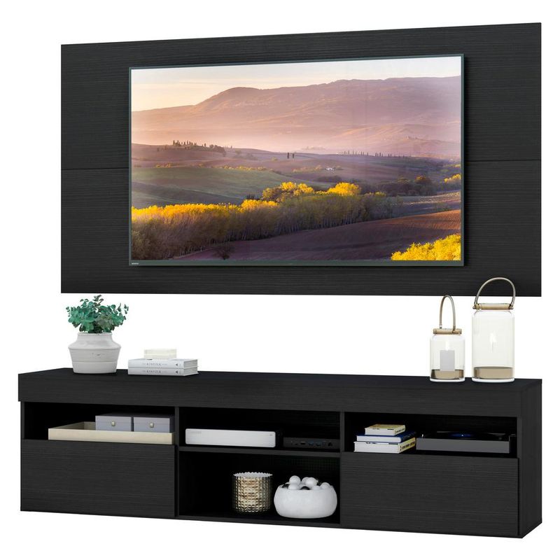 Rack com Painel e Suporte para TV até 65" Suspenso com 2 Portas Londres Multimóveis Preto REF: 569778_Sicredi