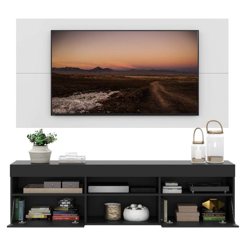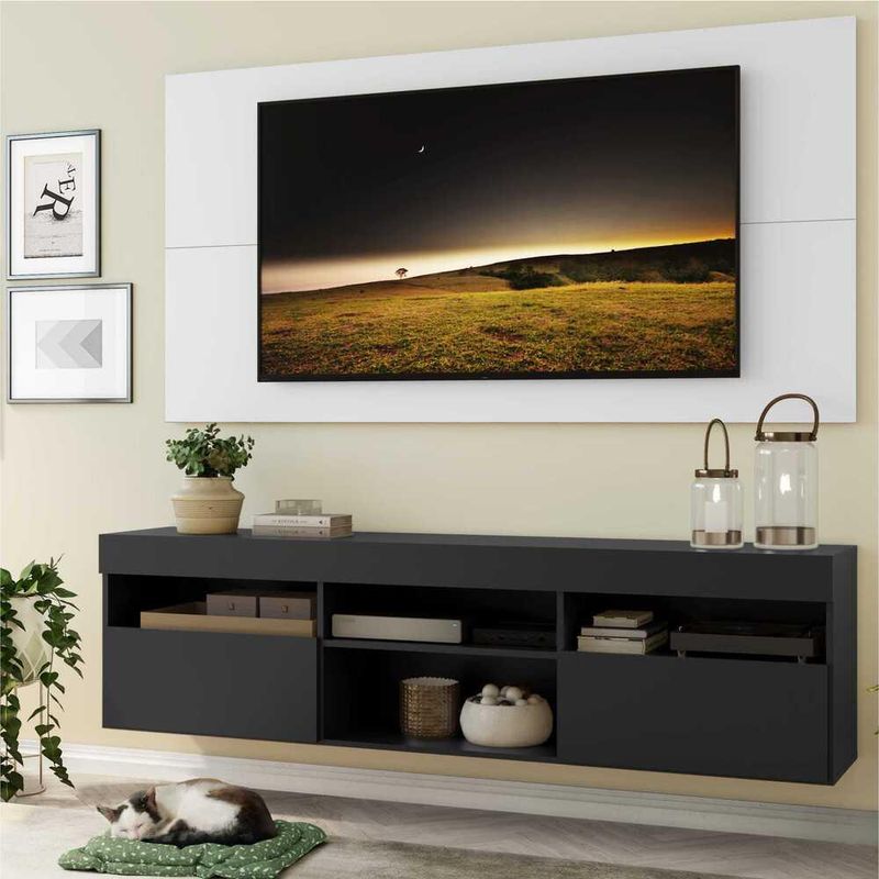 Rack com Painel e Suporte para TV até 65" Suspenso com 2 Portas Londres Multimóveis Preto/Branco REF: 569779_Sicredi