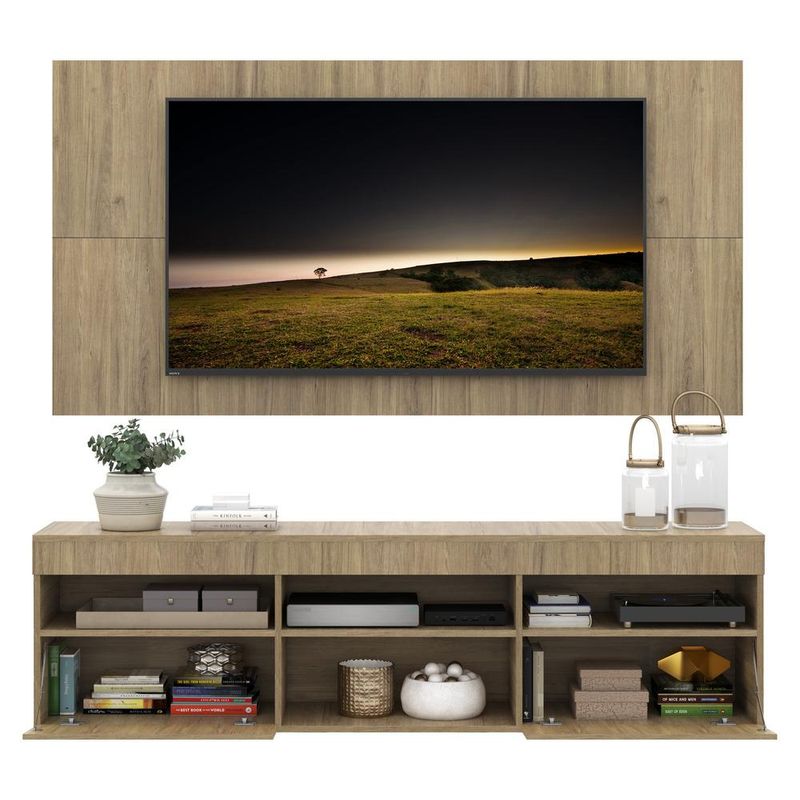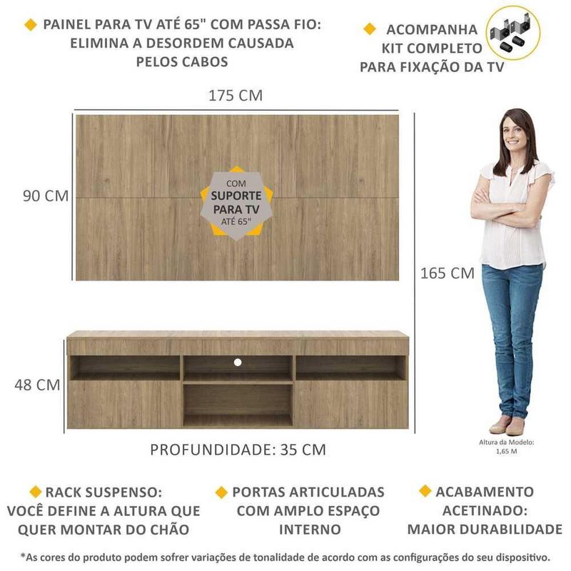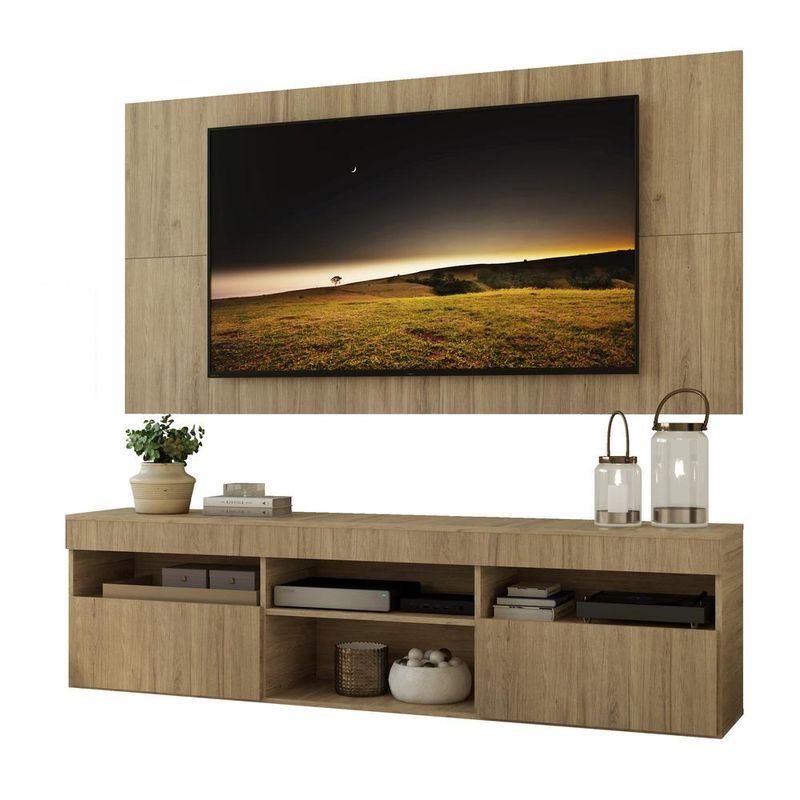Casa e DecoraçãoMóveisRack e painel de TVRack com Painel e Suporte para TV até 65" Suspenso com 2 Portas Londres Multimóveis Rustic
