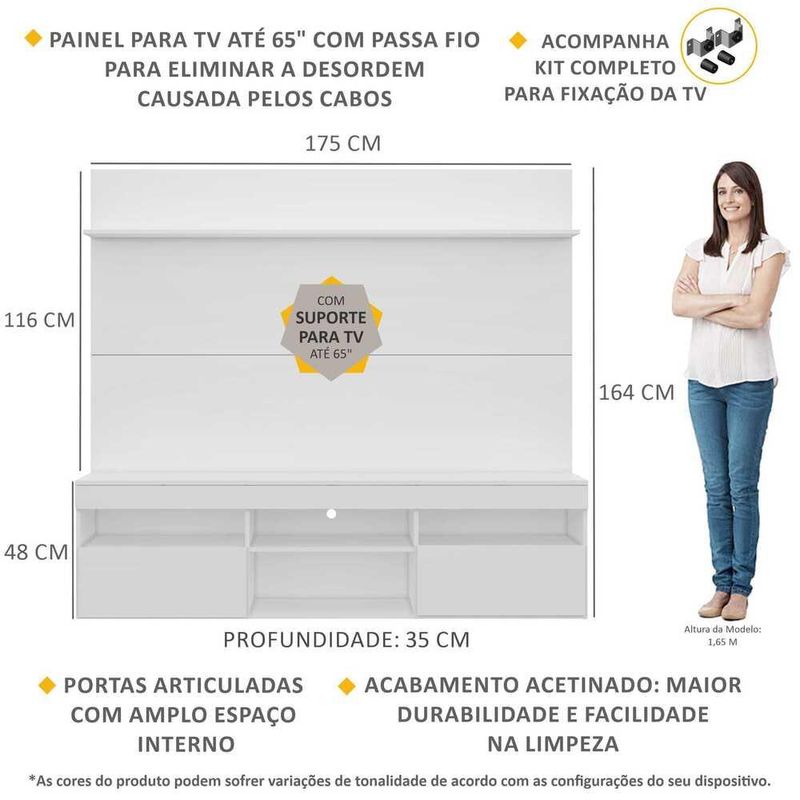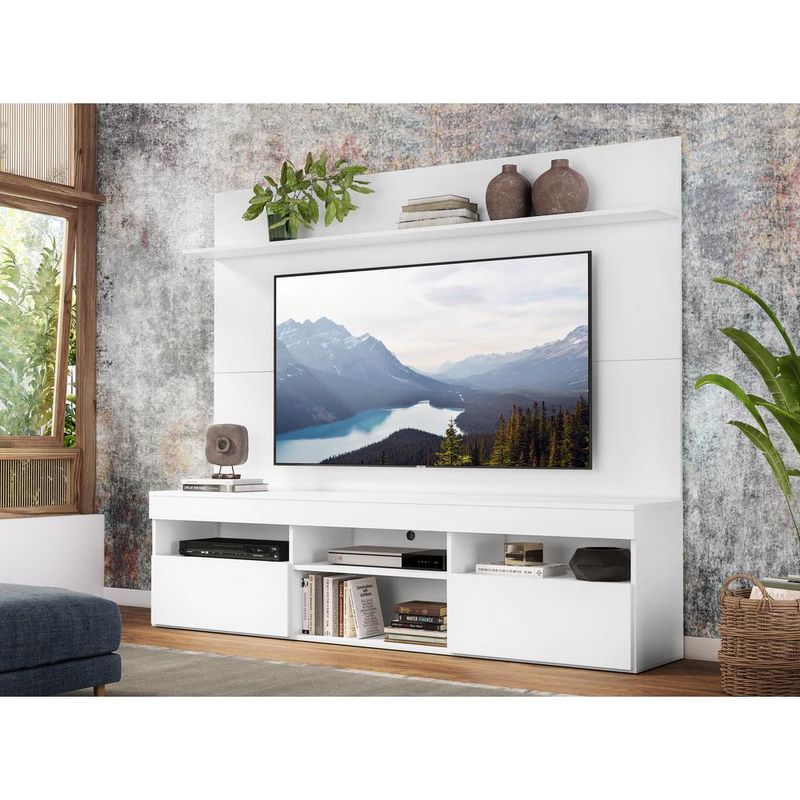 Casa e DecoraçãoMóveisRack e painel de TVRack com Painel e Suporte TV 65" com Prateleira Madri Multimóveis Branco