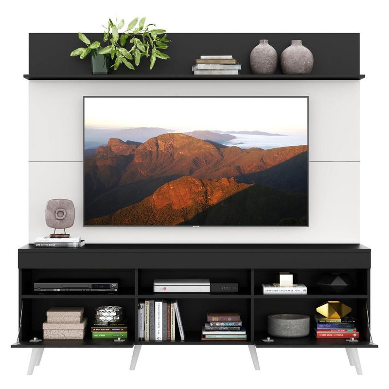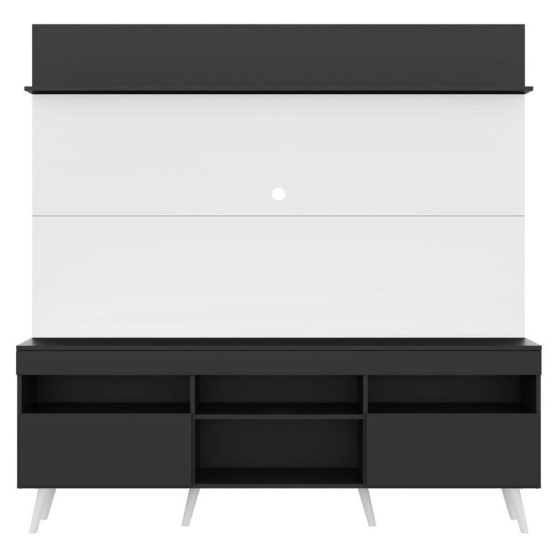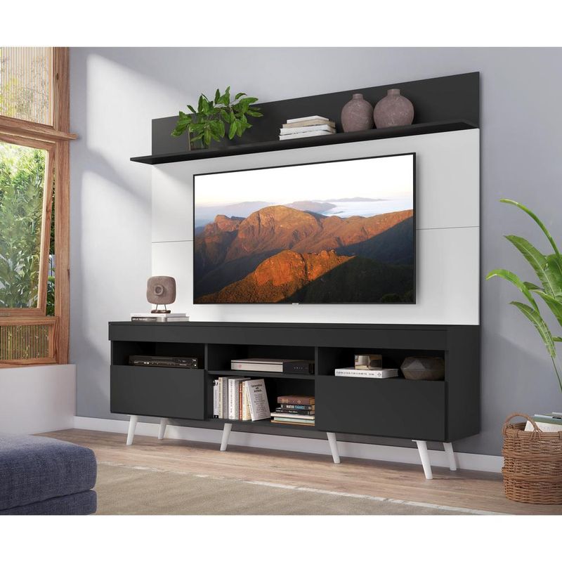 Rack com Painel e Suporte TV 65" Madri Multimóveis Preto/Branco com Prateleira e Pés Retrô Branco REF: 569831_Sicredi