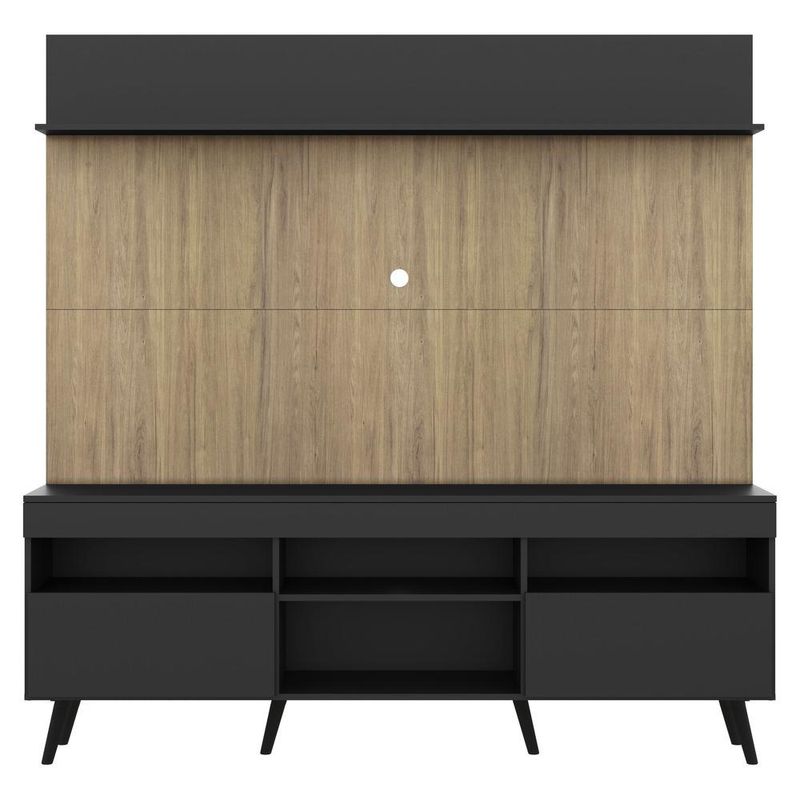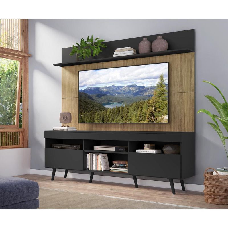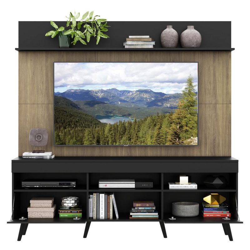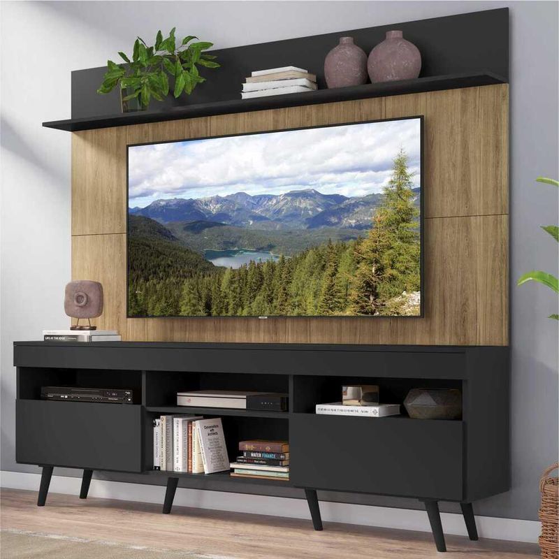 Casa e DecoraçãoMóveisRack e painel de TVRack com Painel e Suporte TV 65" Madri Multimóveis Preto/Rustic com Prateleira e Pés Retrô Preto
