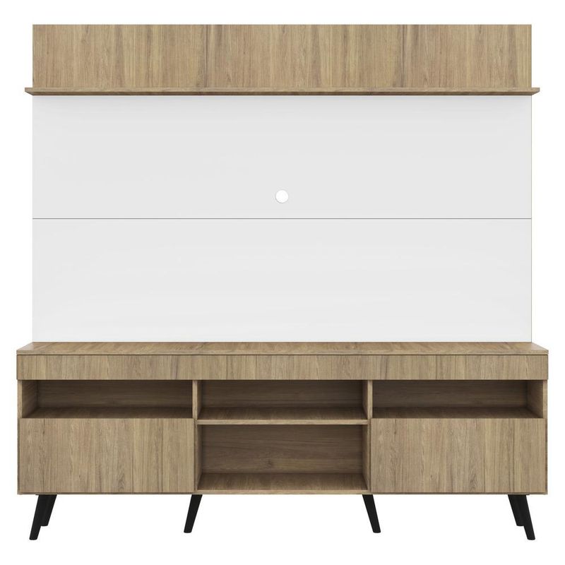 Casa e DecoraçãoMóveisRack e painel de TVRack com Painel e Suporte TV 65" Madri Multimóveis Rustic/Branco com Prateleira e Pés Retrô Preto