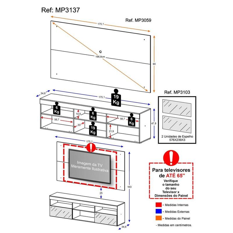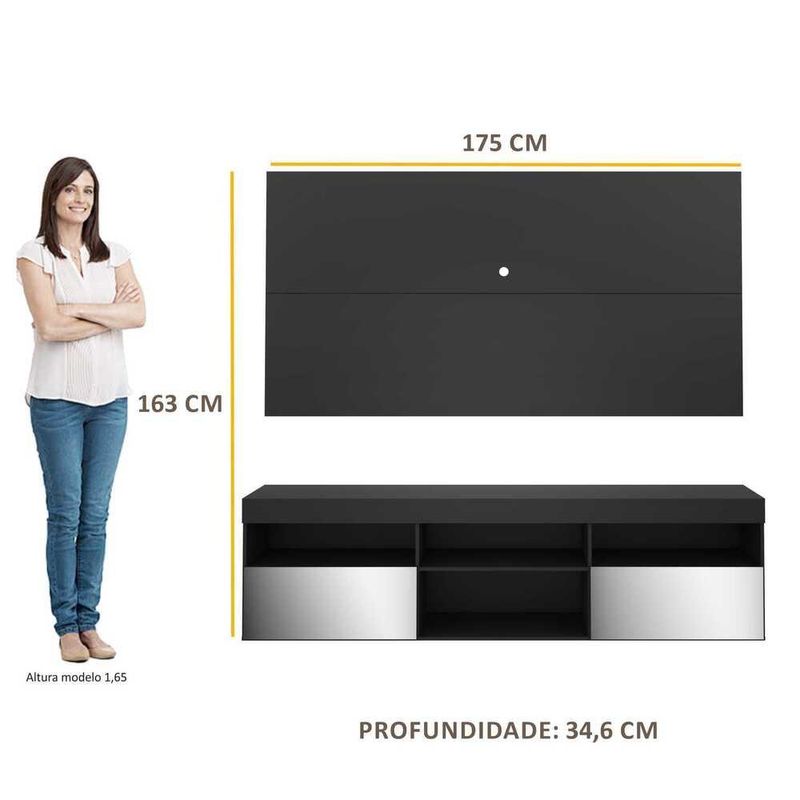 Rack com Painel P/TV até 65" e Espelho Flórida Multimóveis Preto REF: 764813_Sicredi