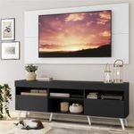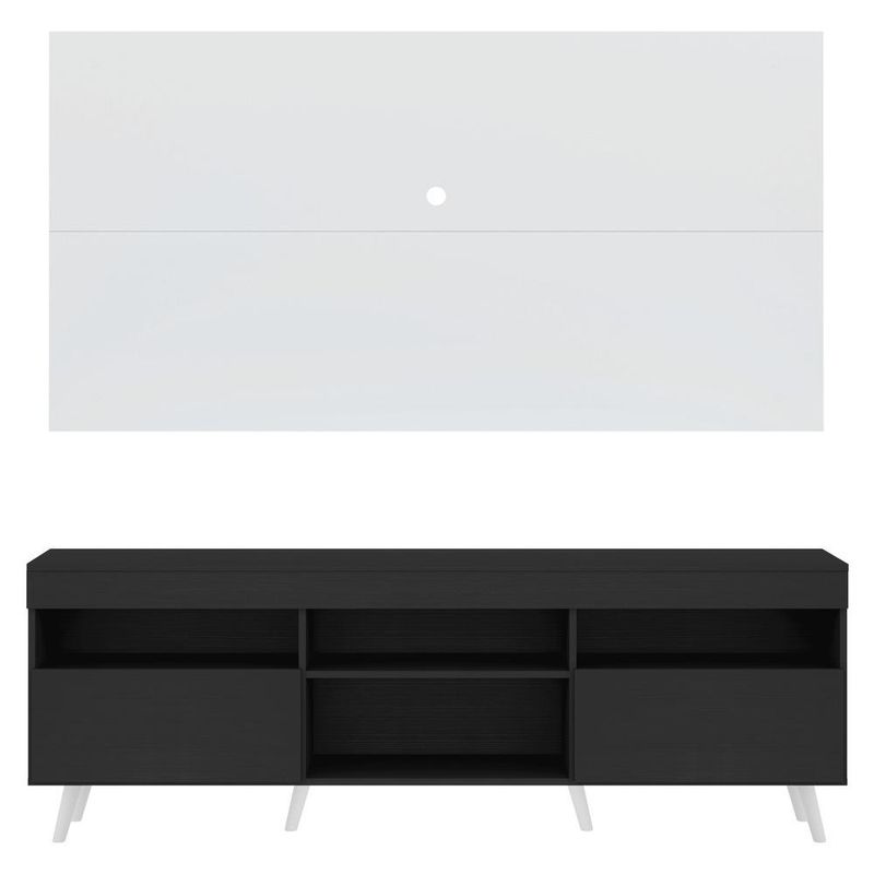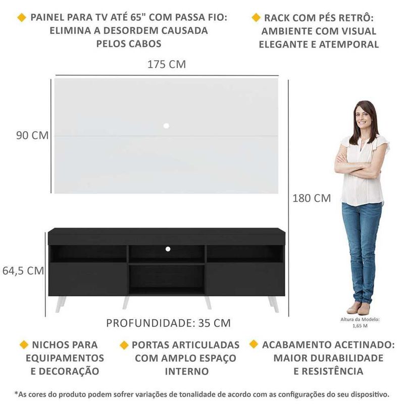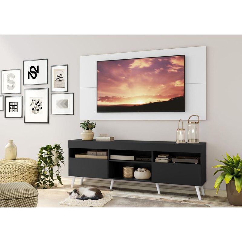 Rack com Painel TV 65" Londres Multimóveis Pés Retrô e 2 portas Preto/Branco/Branco REF: 576642_Sicredi