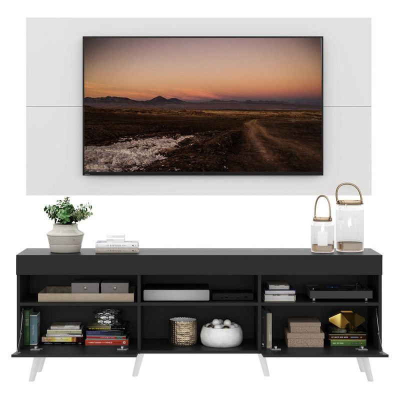 Casa e DecoraçãoMóveisRack e painel de TVRack com Painel TV 65" Londres Multimóveis Pés Retrô e 2 portas Preto/Branco/Branco