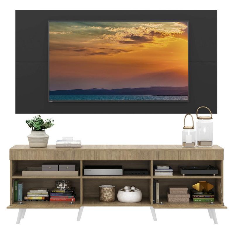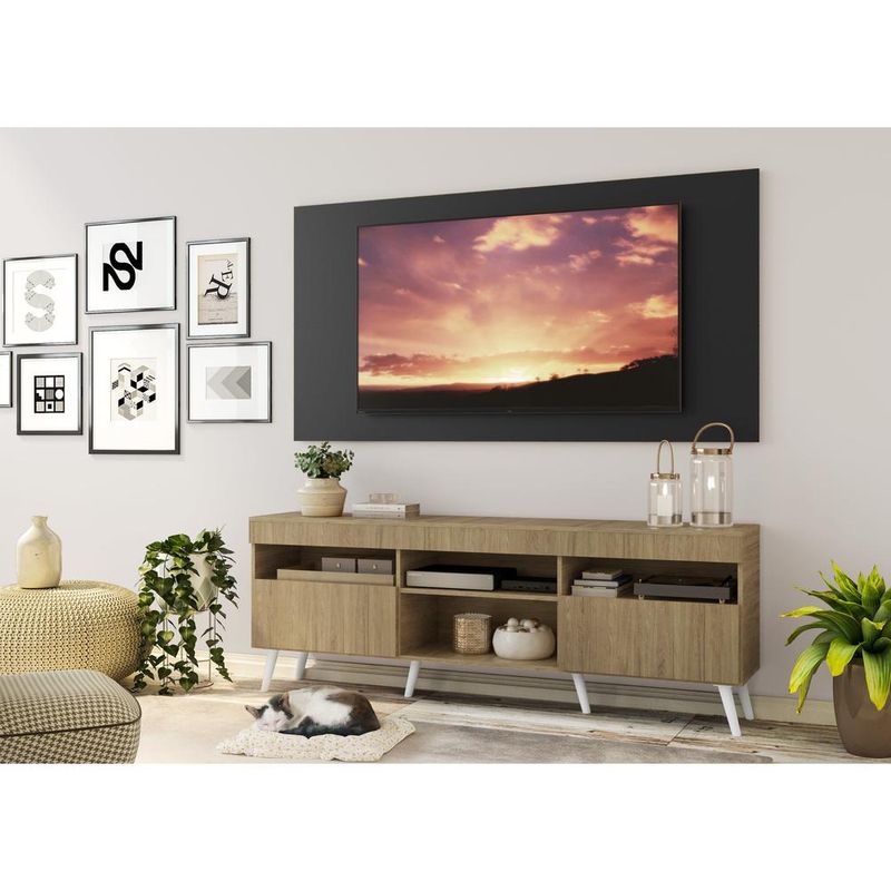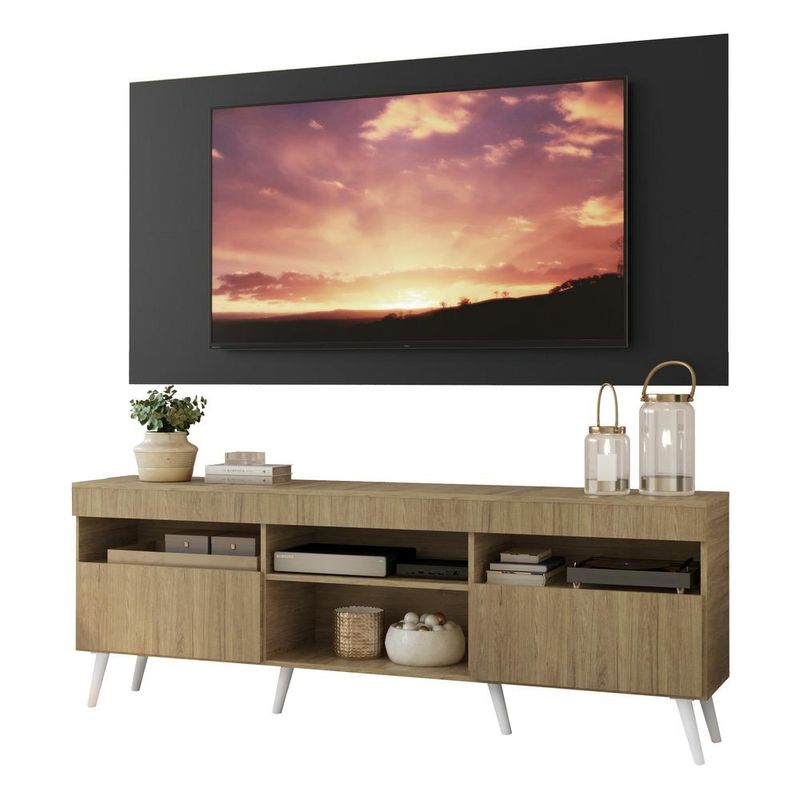 Casa e DecoraçãoMóveisRack e painel de TVRack com Painel TV 65" Londres Multimóveis Pés Retrô e 2 portas Rustic/Preto/Branco