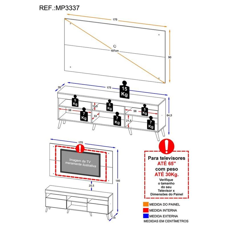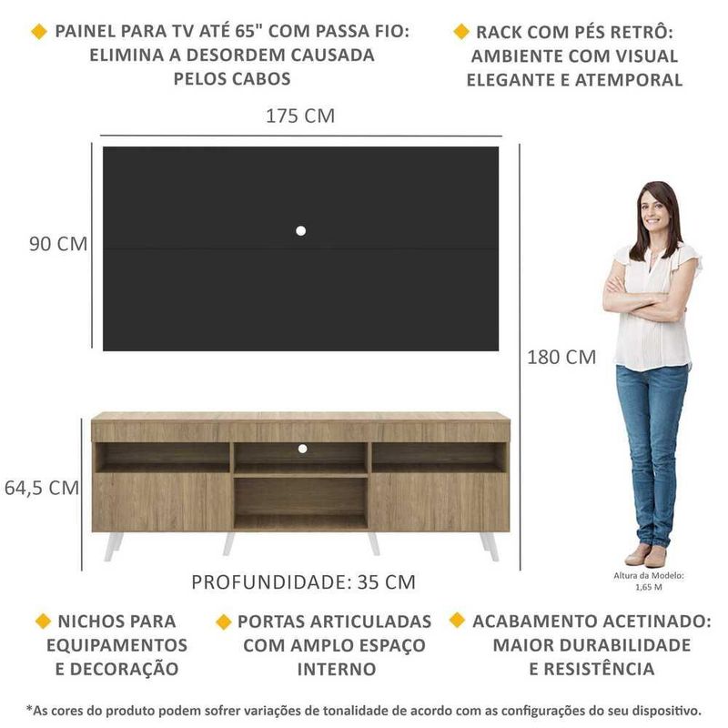 Rack com Painel TV 65" Londres Multimóveis Pés Retrô e 2 portas Rustic/Preto/Branco REF: 578140_Sicredi