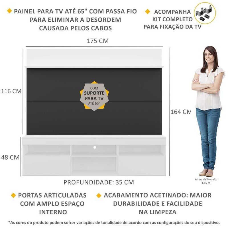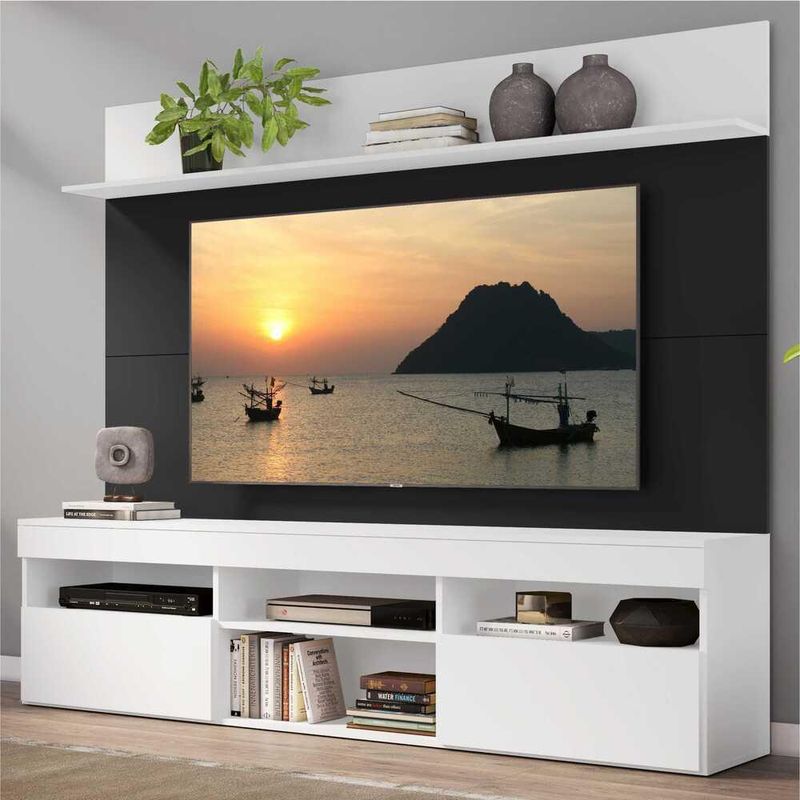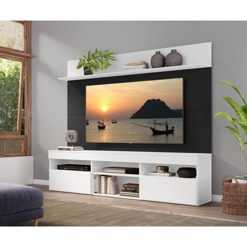 Rack com Painel TV 65" Madri Multimóveis com Suporte e Prateleira Branco/Preto REF: 578398_Sicredi