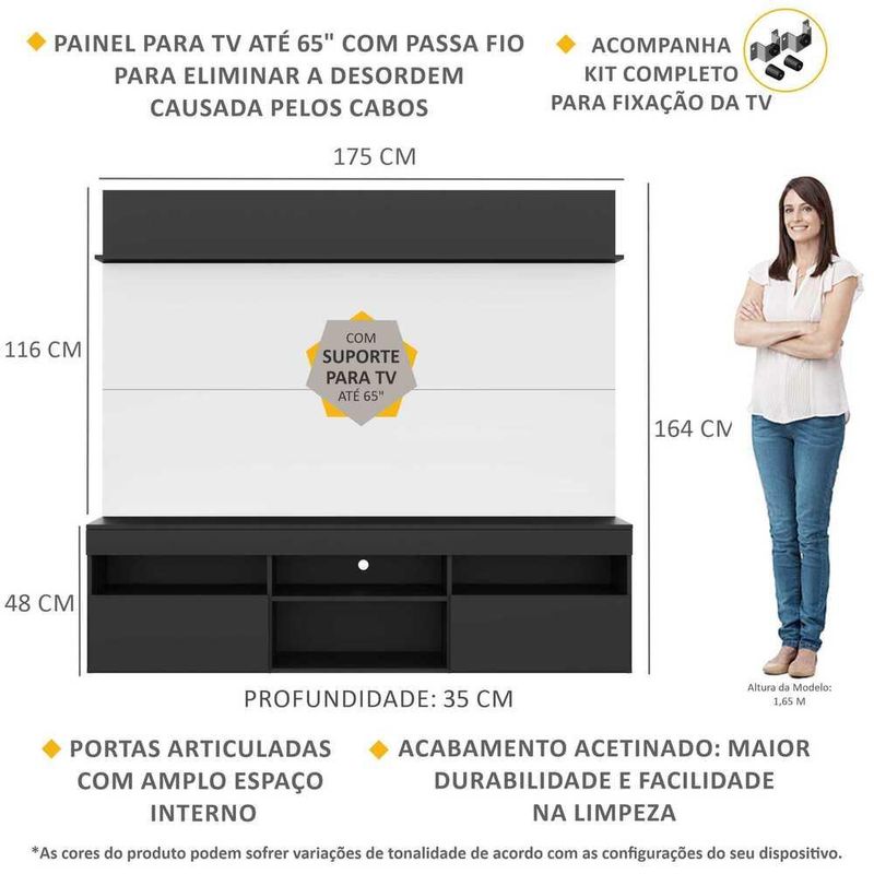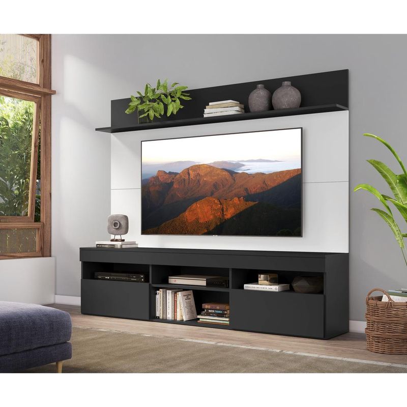 Rack com Painel TV 65" Madri Multimóveis com Suporte e Prateleira Preto/Branco REF: 579051_Sicredi