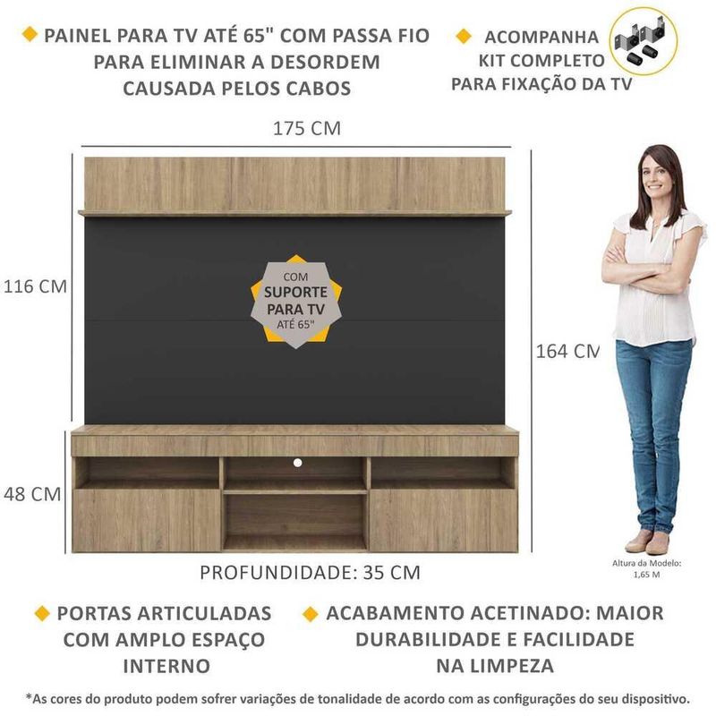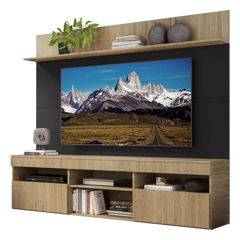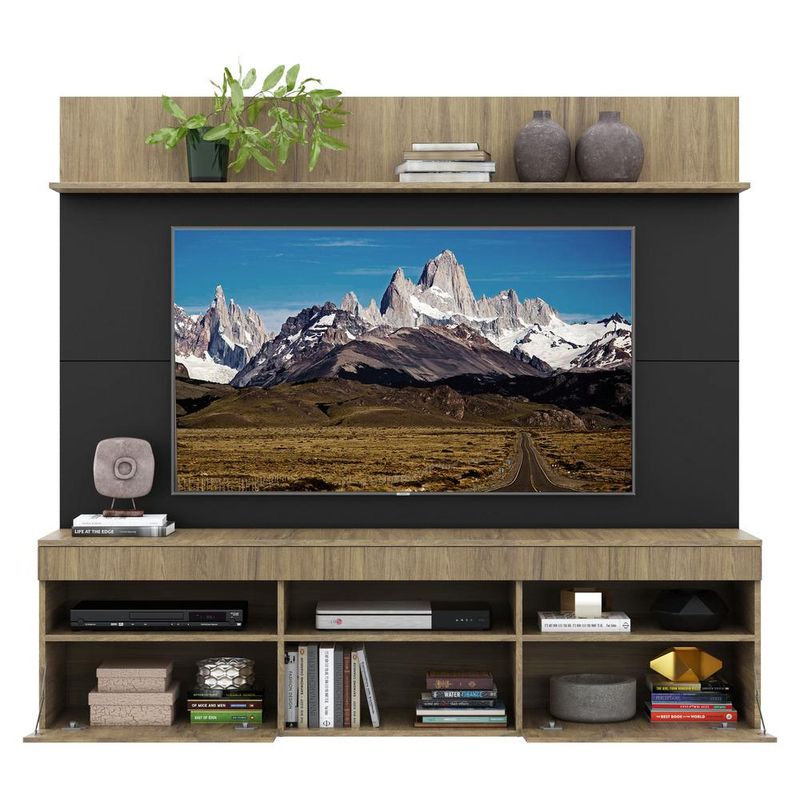 Casa e DecoraçãoMóveisRack e painel de TVRack com Painel TV 65" Madri Multimóveis com Suporte e Prateleira Rustic/Preto