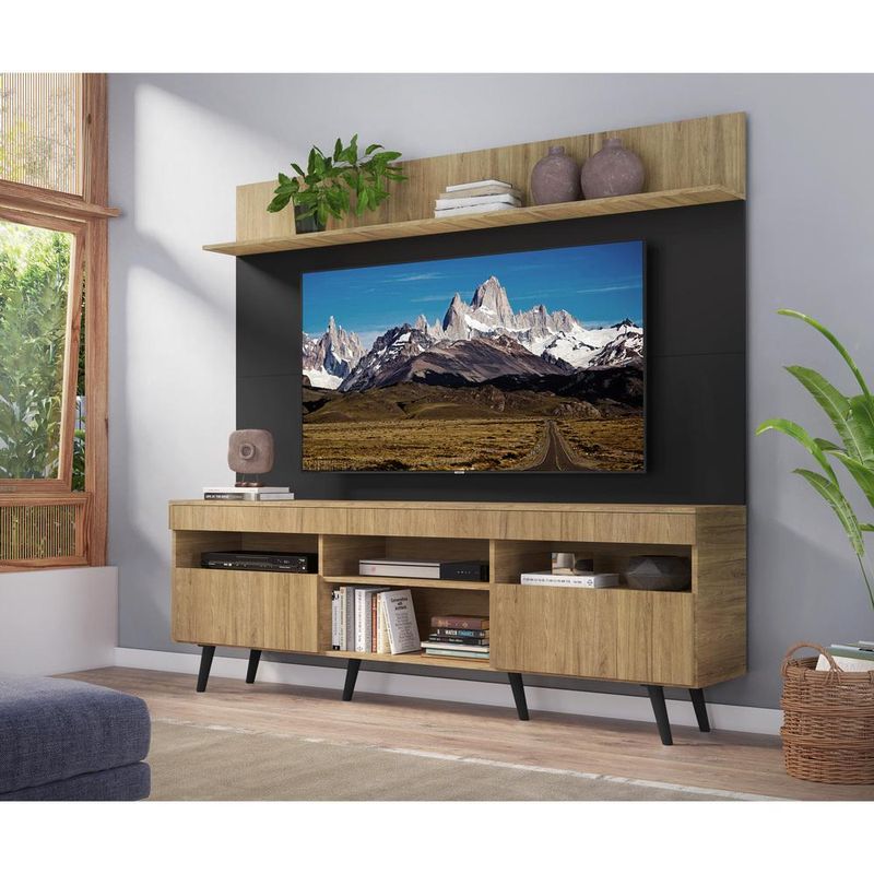 Casa e DecoraçãoMóveisRack e painel de TVRack com Painel TV 65" Madri Multimóveis Rustic/Preto com Prateleira e Pés Retrô Preto