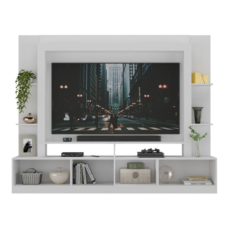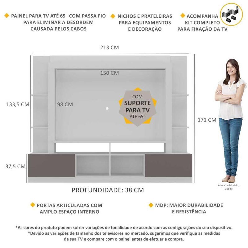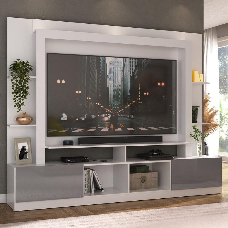Rack Estante com Painel e Suporte TV 65" e 2 portas Oslo Multimóveis Branco/Lacca Fumê REF: 764787_Sicredi