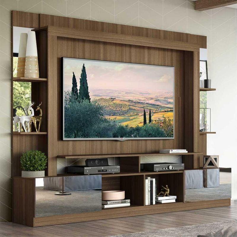 Rack Estante com Painel TV 65" e Espelho Oslo Multimóveis Madeirado/Lacca Fumê REF: 770486_Sicredi