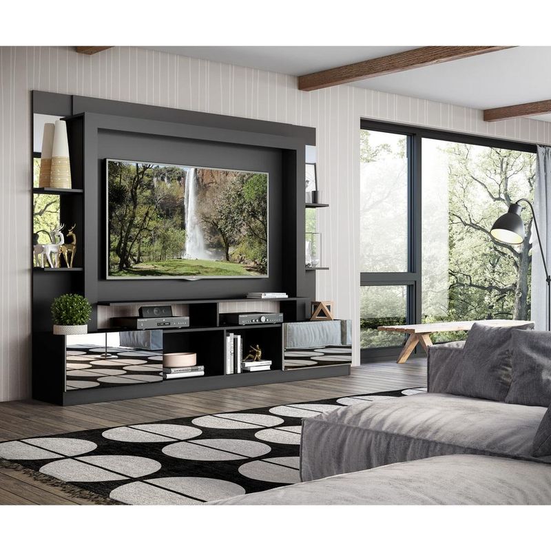 Casa e DecoraçãoMóveisRack e painel de TVRack Estante com Painel TV 65" e Espelho Oslo Multimóveis Preto/Branco