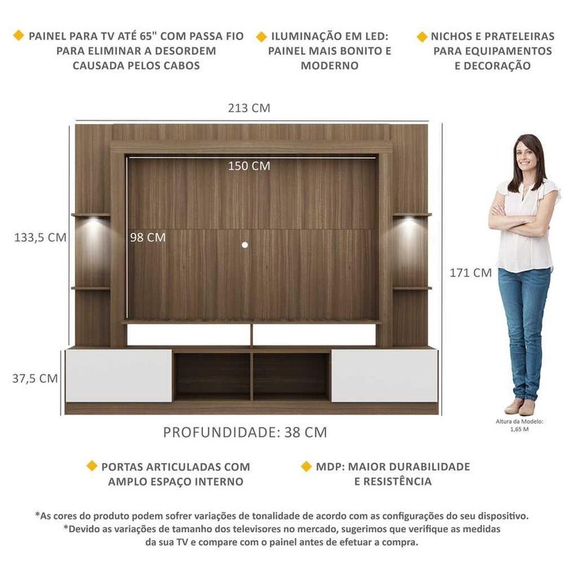 Rack Estante TV 65" com Leds Berlim Multimóveis Madeirado/Branco REF: 765801_Sicredi