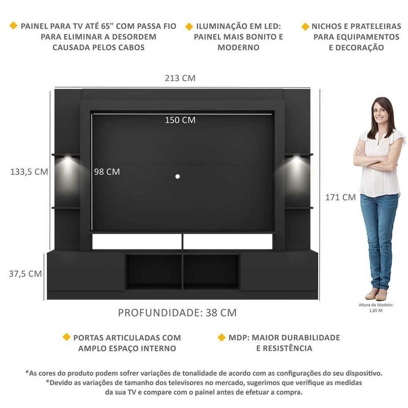 Rack Estante TV 65" com Leds Berlim Multimóveis Preto REF: 766137_Sicredi