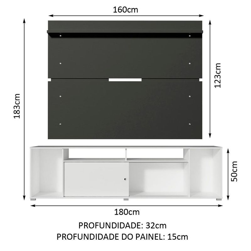 Rack Madesa Cancun e Painel para TV até 65 Polegadas - Branco/Preto REF: 515256_Sicredi