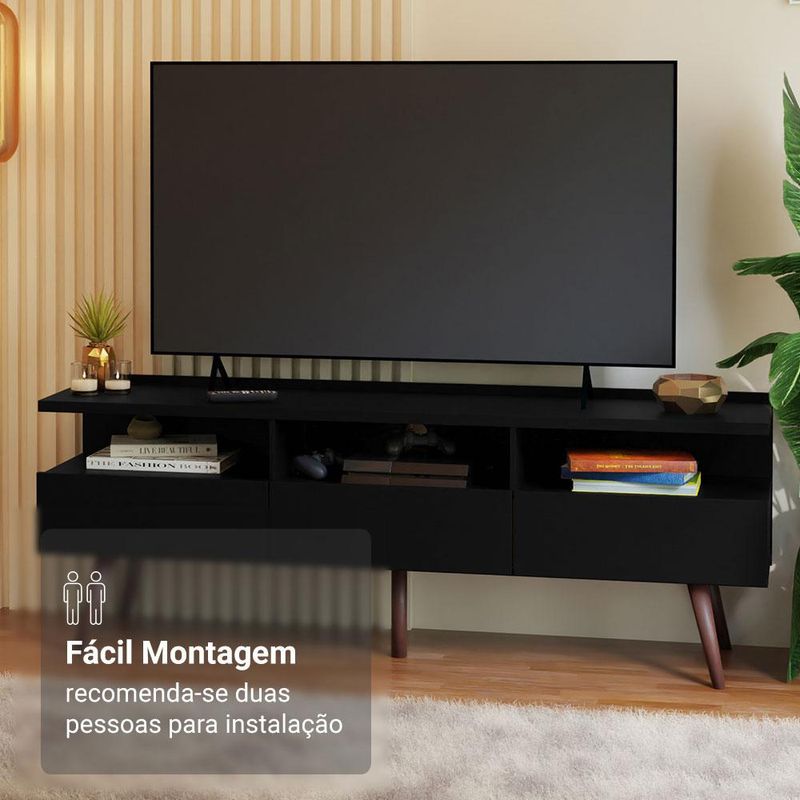 Rack para TV até 65 Polegadas com Pés Retro Preto Londres Madesa REF: 678987_Sicredi