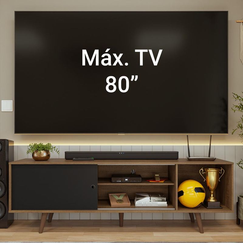 Casa e DecoraçãoMóveisRack e painel de TVRack para TV até 80 Polegadas 160cm com Pés Rustic/Preto Torino Madesa