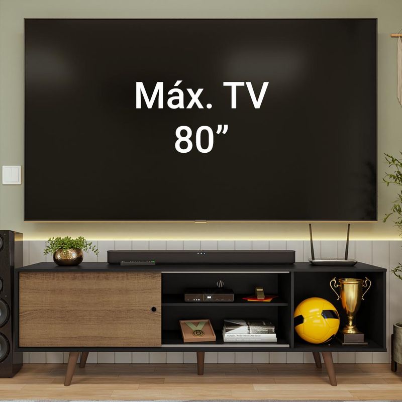 Casa e DecoraçãoMóveisRack e painel de TVRack para TV até 80 Polegadas 160cm Preto/Rustic com Pés Rustic Torino Madesa