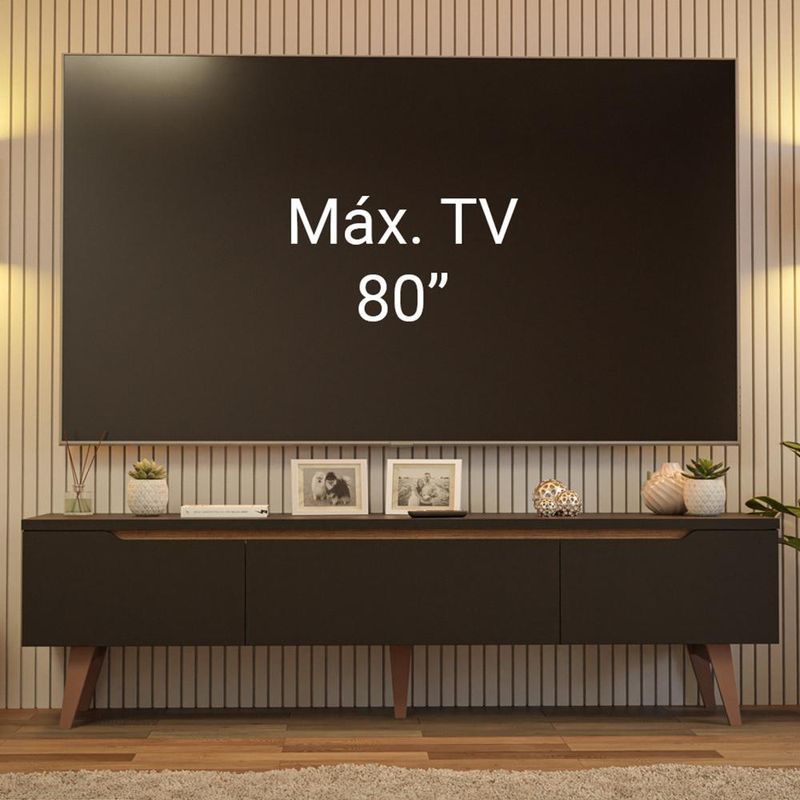 Rack para TV até 80 Polegadas 180cm 2 Portas 1 Gaveta Preto/Rustic Doha Madesa REF: 7891760983121