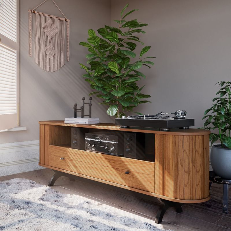 Rack Sala TV Curvo 180 cm Nicho e Gaveta em MDF Freijó com Preto Fosco Dalla Costa TB300JPF REF: 7899676639477