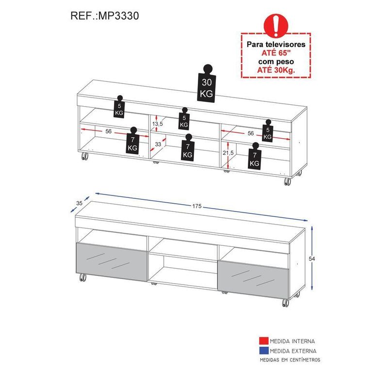 Rack TV 65" com Espelho, Rodízios e 2 Portas Paris Multimóveis Branco REF: 766842_Sicredi