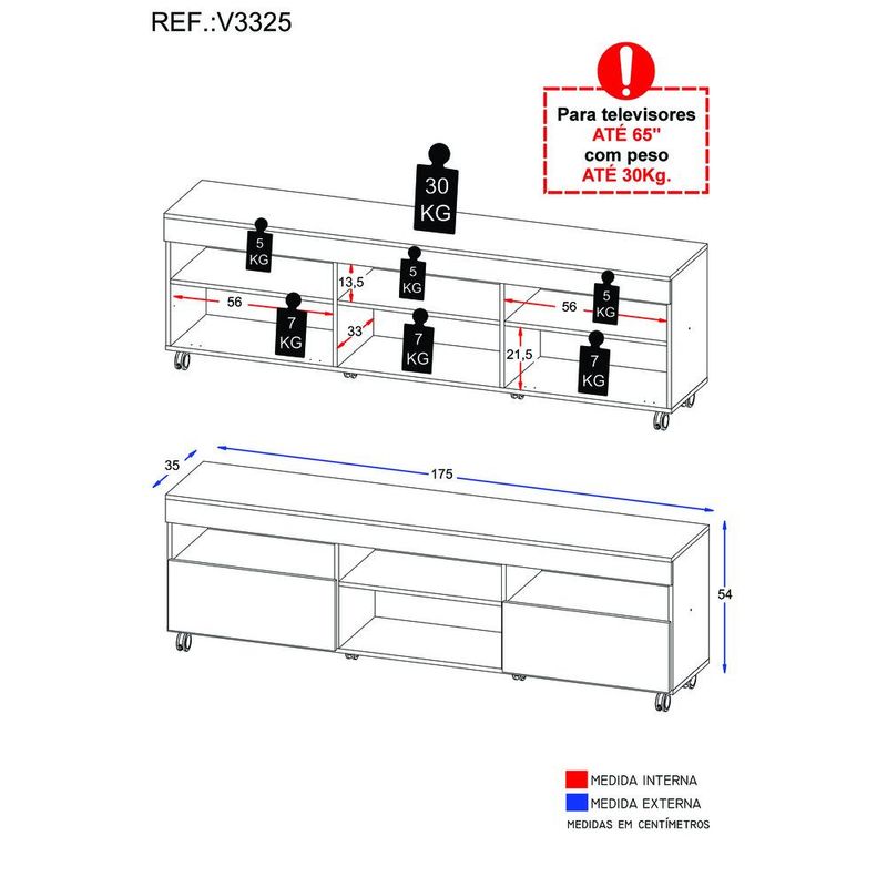 Rack TV 65" com Rodízios e 2 Portas Paris Multimóveis V3325 REF: 771038_Sicredi