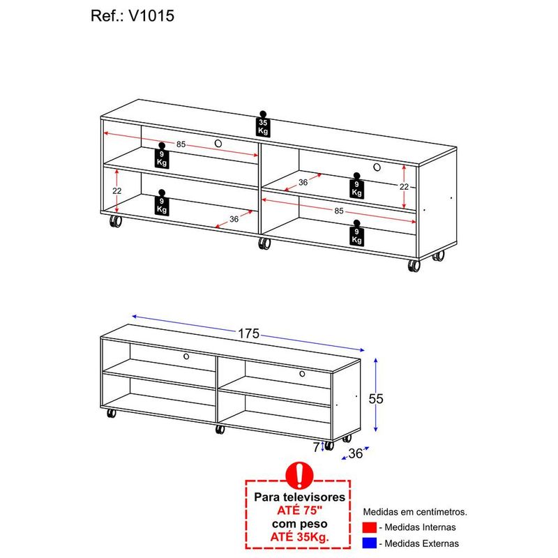 Rack TV 75" com Rodízios Jazz Multimóveis V1015 REF: 571652_Sicredi