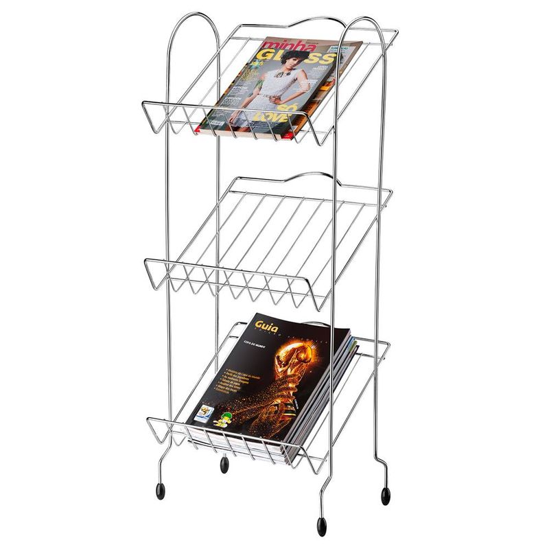 Revisteiro 3 Andares Utimil em Aço Cromado e PVC REF: 74074_Sicredi