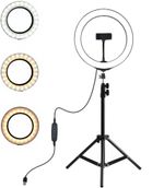 Eletrônicos e TecnologiaTelefoniaAcessóriosRing Light Iluminador Led Usb 10 Polegadas 26Cm Com Suporte Tripé 2 Metros