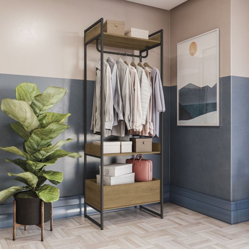 Casa e DecoraçãoMóveisGuarda-roupa e roupeirosRoupeiro Kappesberg Industrial 1 gaveta LI028 Freijó e Preto Fosco