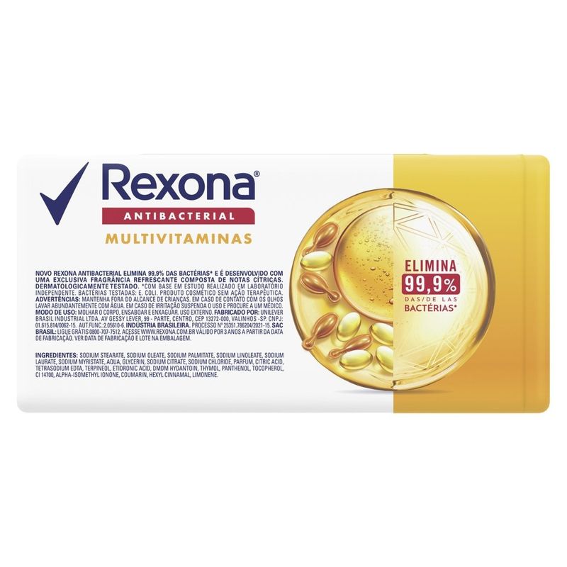 Beleza e SaúdeSaúdeCuidado DiárioSabonete Em Barra Rexona Antibacterial Multivitaminas 6 Unidades 84g Cada