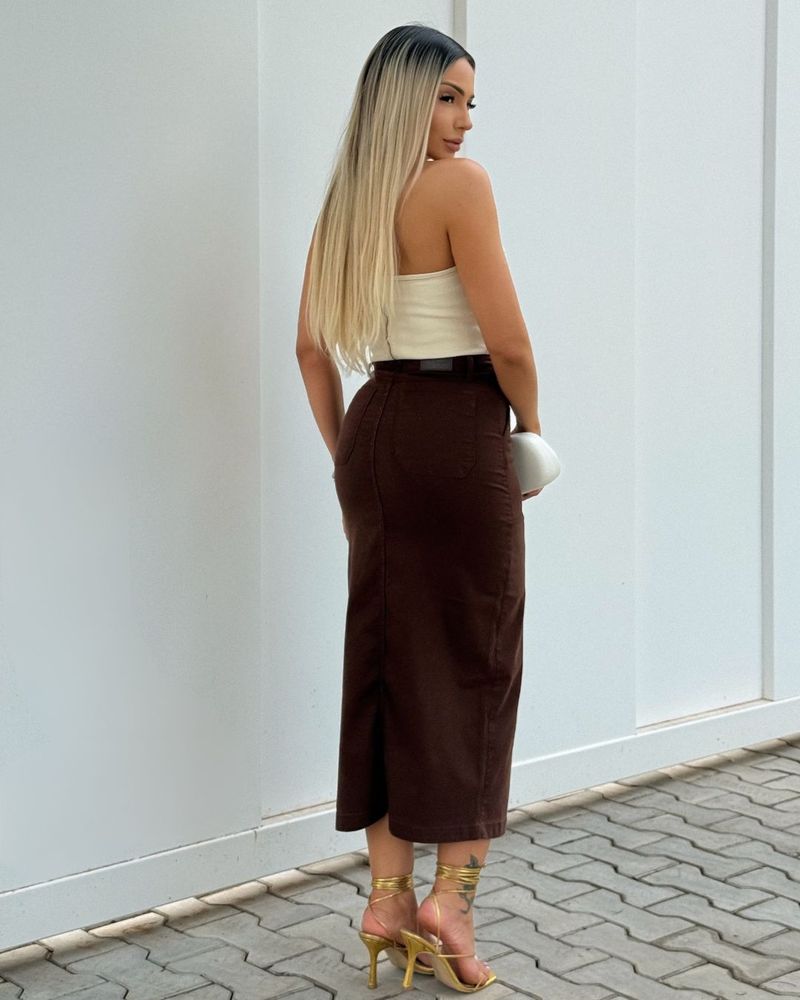 ModaFemininoSaias e VestidosSAIA MIDI ALONGADA MARROM